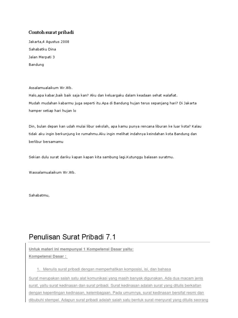 Berhubung aku gak pinter nulis, aku udahin dulu ya surat ini sob.ku tunggu surat balasan darimu. Contoh surat pribadi untuk sahabat teman dan keluarga contoh surat. 22 contoh surat pribadi singkat untuk sahabat guru ortu. Meski surat adalah salah satu cara komunikasi yang. Contoh surat pribadi di bawah ini adalah panduan untuk anda yang ingin membuat surat pribadi kepada seseorang ataupun bagi anda yang sedang mencari contoh surat untuk menyelesaikan tugas menulis seperti dalam pelajaran bahasa indonesia.